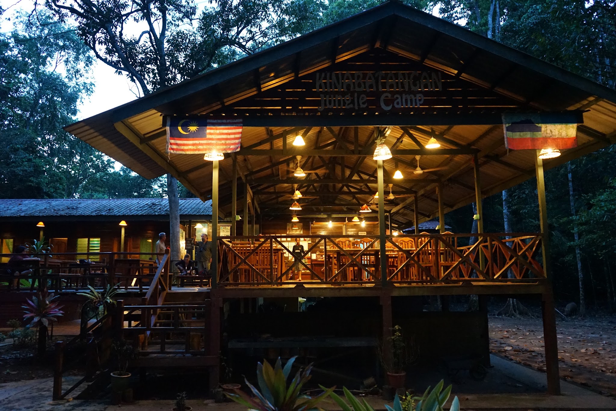 Although there were lots of animals to see in the sanctuaries, it still wasn't the jungle experience I was looking for. To try and see animals in the wild instead, we headed for a trip up the Kinabatangan river to stay at a lodge in the jungle. The Kinabatangan Jungle Camp (KJC) is a 20minute boat ride from the nearest village, and is completely isolated. It turned out to be a great choice - it was no five star resort, but the rooms were clean, the guides were absolutely amazing, and the food was fantastic. My mind was blown away by the number of wild animals we saw. We even started keeping a list of all the birds and monkeys we saw - just from our camp lodge common-area we saw loads of animals including gibbons (loud hooting monkeys), water monitors (a gigantic lizard that looks like a dragon), wild boars, palm civets (looks like a cross between a cat and racoon), an endangered storm stork (only 1000 of these left in the wild!), not to mention a good assortment of giant bugs. It was also a great place to talk with other guests, who mostly were hard-core wildlife experts. Most of the other people at the lodge were either biologists or hardcore bird-watchers, all of which were actually out searching for certain species of birds and animals. Needless to say we had plenty of help at the lodge whenever we were trying to identify a bird we saw. Evening conversations revolved around dicussing the finer points of hornbill identification...